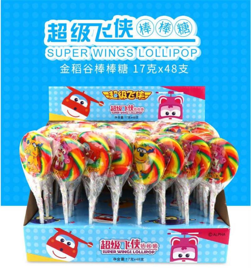 金稻谷推出的超级飞侠棒棒糖,绚丽的颜色,儿时的回忆,童年的乐趣,精选好原料,新鲜果汁真材实料,上好的白砂糖,自然好味道,葡萄糖浆干净卫生,从原料开始,每个环节严格把关。