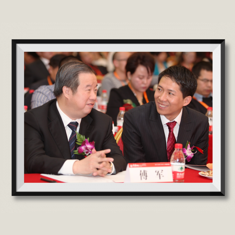 刘景斓老师与——新华联集团董事局主席傅军合影,在一次活动上刘景斓老师遇到了傅军,并在一起聊企业管理、企业培训,十分投机,傅军表示有合作的机会与意愿。