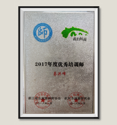 蔡洪峰老师参加由浙江省企业培训师协会和杭州市杭商研究会共同举办的培训师评选活动中,实力经验以及所得成都符合评定标准,荣获——“2017年度优秀培训师”。
