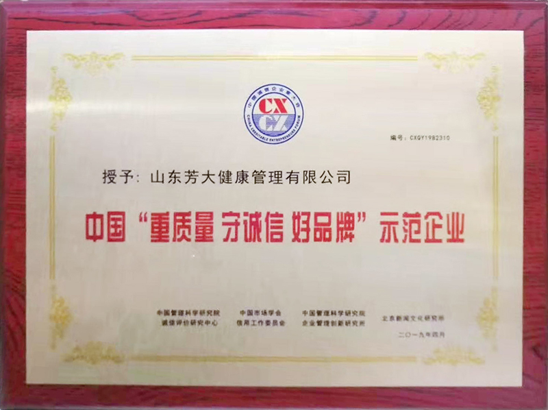恭喜山东芳大集团董事长,吴小芳老师管理的山东芳大集团荣获中国“重质量守诚信好品牌”示范企业荣誉称号,这是社会对芳大集团的嘉奖,也是对其诚信经营的最好肯定。