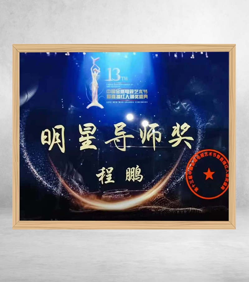 程鹏,在中国电视艺术家协会微视频(微电影)专业委员会主办,湖南巨幕文化传媒有限公司承办的第十三届中国金鹰电视艺术节暨直播红人颁奖盛典中,荣获——“明星导师”荣誉称号。