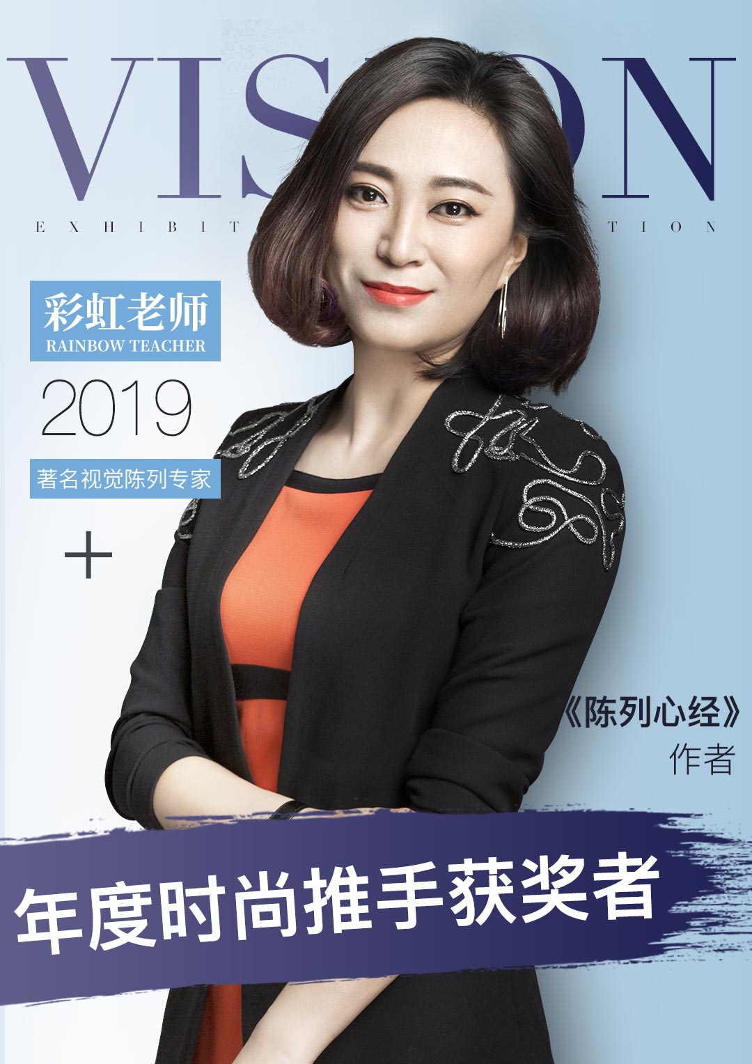 著名视觉陈列专家; 彩虹陈列搭配学院创始人; 年度时尚推手奖获得者; 首届国际橱窗大赛明星导师; 中国流行色协会理事; 中国橱窗设计协会副会长; 香港服装学院客座教授;