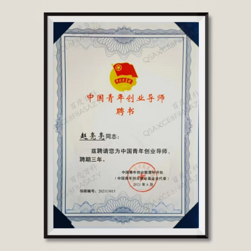 赵亮亮老师荣获由共青团邯郸市委、邯郸市人社局、邯郸市科技局以及邯郸银行联合颁发的“青年创新创业导师”称号,这是对赵老师在业界做出的成绩的肯定,也证明了老师在业内极具影响力。