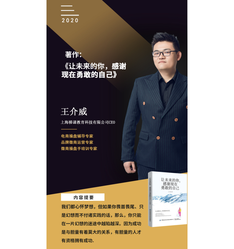 国内知名社交新零售操盘辅导专家:王介威——操盘经验丰富,注重企业落地方案执行,追求方案可执行可落地可回款,创立社交新零售商业模式九大操盘体系,帮助团队裂变型企业成功起盘。