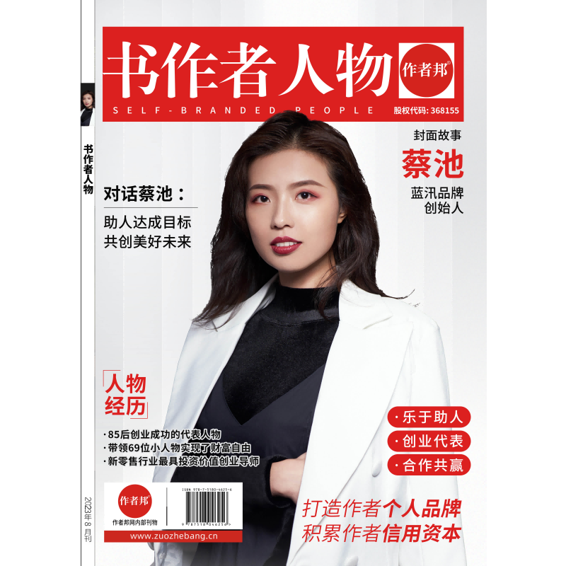 蓝汛品牌创始人蔡池,书作者人物封面设计,她持续创造社交新零售的传奇,她为蓝汛品牌定的slogan是:一辈子卖好一贴膏药!以初心筑梦,致蓝图。她是长期主义者,她更是持续连赢的创业导师。