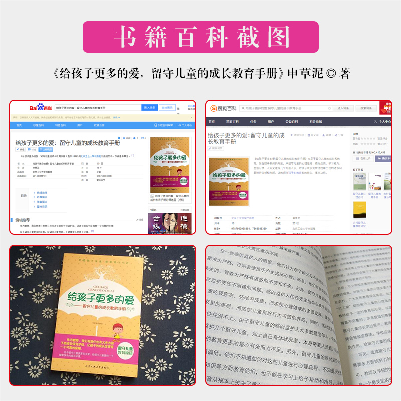 《给孩子更多的爱,留守儿童的成长教育手册》留守儿童的成长和教育的诸多问题让留守儿童拥有一个美好的未来。进行分析和判断,