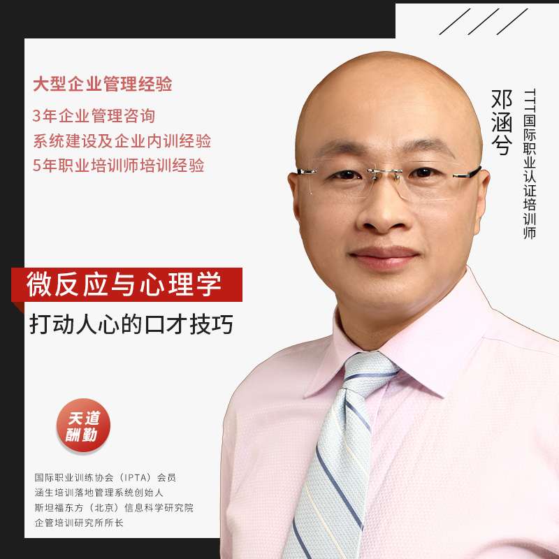 邓涵兮,PTT靠前职业认证培训师,靠前职业训练协会(IPTA)会员,理财规划师(CFP),四季性格密码系统创始人,涵生培训落地管理系统创始人,2012中华讲师网千强讲师,《民营企业家》杂志特约撰稿人、讲师。8年大型企业管理、培训经验;4年企业管理咨询、系统建设经验;6年职业培训师经验。授课超过58场,擅长企业内训、管理咨询及企业问题诊断,并遵循实战、实用、实操、实效的“四实”原则,为企业产生实实在在的效果。