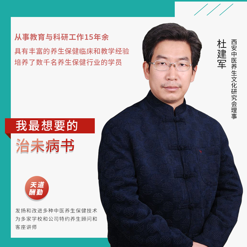 杜建军,男,毕业于陕西中医学院,曾在医院内科工作,后进入养生保健行业,从事教育与科研工作15年余,具有丰富的养生保健临床和教学经验,培养了数千名养生保健行业的学员。