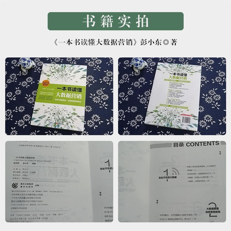 《一本书读懂大数据营销》是一部以大数据为立足点,解读营销的图书。当今是一个大数据应用时代,营销领域的大数据应用更是十分重要。本书通过对大数据营销的解读和对众多案例的分析,让读者一眼即可彻底看懂大数据,玩透大数据营销。该书深入浅出,为行业指点迷津,为企业营销指明方向。本书内容详细具体,通过大数据营销的兴起、数据挖掘技巧、云计算的分布式平台、新市场的大数据策略、将大数据转化为价值、数据智慧经济的崛起等,帮助读者彻底认识大数据营销。该书一共分为八章。第一章:无处不在的大数据,通过“啤酒+尿布”这样有趣的现象来生动呈现了大数据充斥人们生活的现象。第二章:大数据颠覆传统营销格局,举了开微店,顺丰布局农村快递等这样鲜活的例子。第三章:你不得不拥抱大数据的理由,讲述了大数据在企业和人们生活中起到的举足轻重的作用。第四章:掌握了大数据,才能赢得营销主动权,该章告诉读者,只有真实的大数据才能创造更大的价值。第五章:大数据打开营销思路,用冰桶挑战这样风靡全球的活动来说明抓住大数据就能抓住成功的机会。第六章:让数据驱动利益奔跑,主要介绍了如何量化来实现目标。第七章:未来,一切将被数据左右,强调了大数据同样能给中小企业带来无限商机。第八章:那些积极拥抱大数据的市场弄潮儿,则举了很多形象的例子,如《小时代》、《致我们终将逝去的青春》、趣多多玩转愚人节等等。