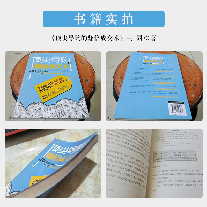 《顶尖导购的翻倍成交术》编著者王同。 热销终端培训图书《顶尖导购这样做》全新升级,更新案例,更多技巧干掉成交难的导购名医,准确把脉拿下惊人业绩服装、家纺、建材、IT产品、家电、化妆品等行业都在受益的导购培训课程顶尖导购的秘诀在于善于成交。同样的产品、同一家店铺,有的导购能在一天轻松卖出几十件,而有的导购费尽口舌、跑前跑后却怎么也卖不出。 怎样让“随便看看”的顾客找到需求?怎样让“货比三家”的顾客马上下单?怎样让狠狠砍价的顾客不再斤斤计较?怎样让无端退货的顾客满意而归?……“导购名医”王同汇集了终端销售中每天都会遇到的难题,通过对顾客心理的精准把脉,找到成交难的症结所在,让一线导购迅速掌握翻倍成交的绝招,消灭“零成交”,创造骄人业绩。 升级版增补了行业案例和自测题,更有针对性、实战性,是一本随看随用的导购实用手册。