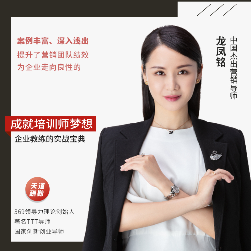 龙凤铭【行业背景】 中国杰出营销导师; 369领导力理论创始人; 著名TTT导师; 国家创新创业导师; 中国百强讲师; 高级企业营销及管理顾问; 同济大学MBA辅导老师; 西北工业大学MBA辅导老师; 格局商学院特聘导师; ETC卓越培训俱乐部创始人、会长; EMN企业管理商学院院长; 【职业经历】 中国百强讲师,拥有十五年的营销实战经验,同时凭借多年对营销理论知识的学习与探索;对中国营销环境的分析与实践;对营销从业现状的总结与反思,逐渐形成了一整套系统化的实战营销进阶培训,案例丰富、深入浅出、帮助很多企业提高了营销人员的素质、提升了营销团队绩效,为企业走向良性的、可持续的发展铺好了阳光大道。