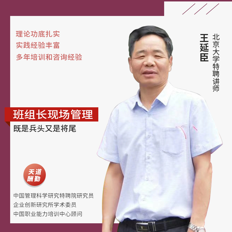 王延臣,全国专业人才培训中心中国管理科学研究院讲师咨询师。具有20年的企业管理培训和咨询经历,先后为一汽丰田红塔集团双汇集团恒安集团神华集团等企业做培训与咨询。主要的培训咨询项目包括:5S/9S管理班组建设班组长管理技能TWI全员生产维护TPM安全生产质量管理及TQM成本管控与压缩精益生产企业运营系统建设和改善企业效率提升持续现场改善生产系统精细化管理等。