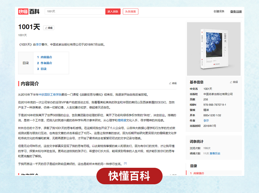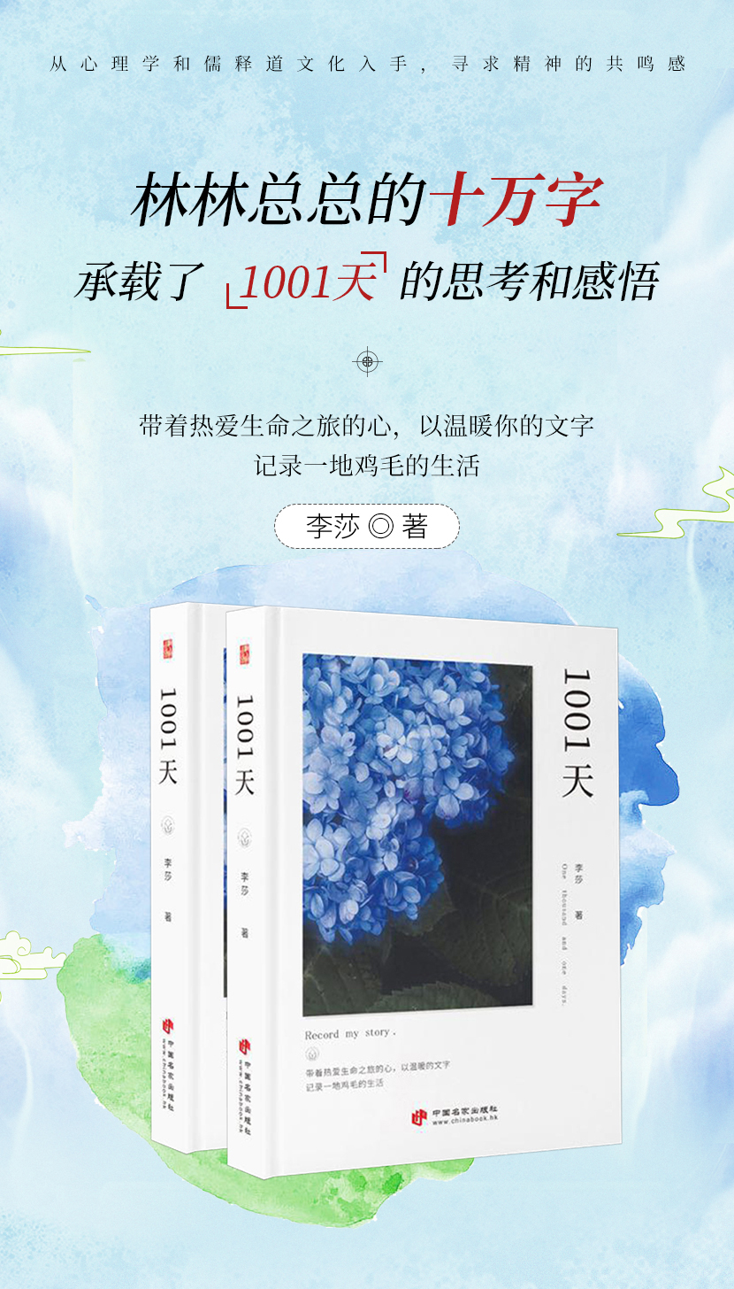 《1001天》——林林总总的十万字,承载了我1001天的思考和感悟,这些文字都真实呈现了我的思考历程,于我而言这一千天的日子是起伏跌宕且美好的,这也是前所未有的另一种修行生活。
