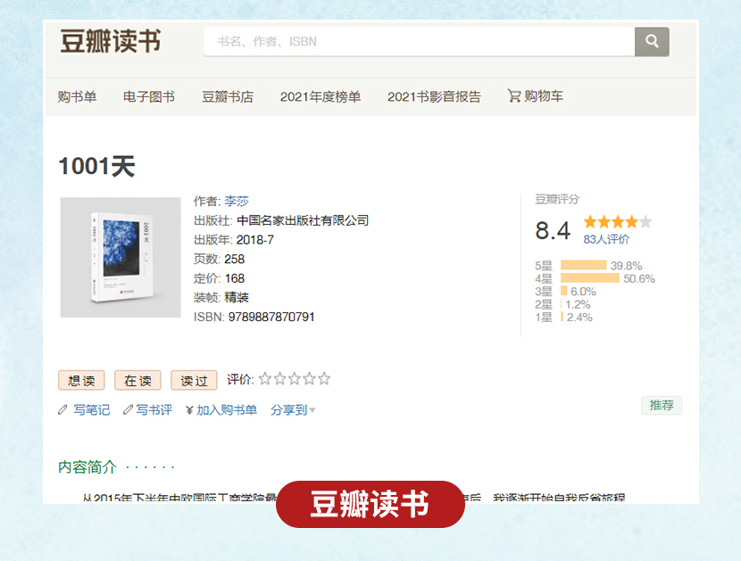李莎:《1001天》——林林总总的十万字,承载了我1001天的思考和感悟,这些文字都真实呈现了我的思考历程,于我而言这一千天的日子是起伏跌宕且美好的,这也是前所未有的另一种修行生活。