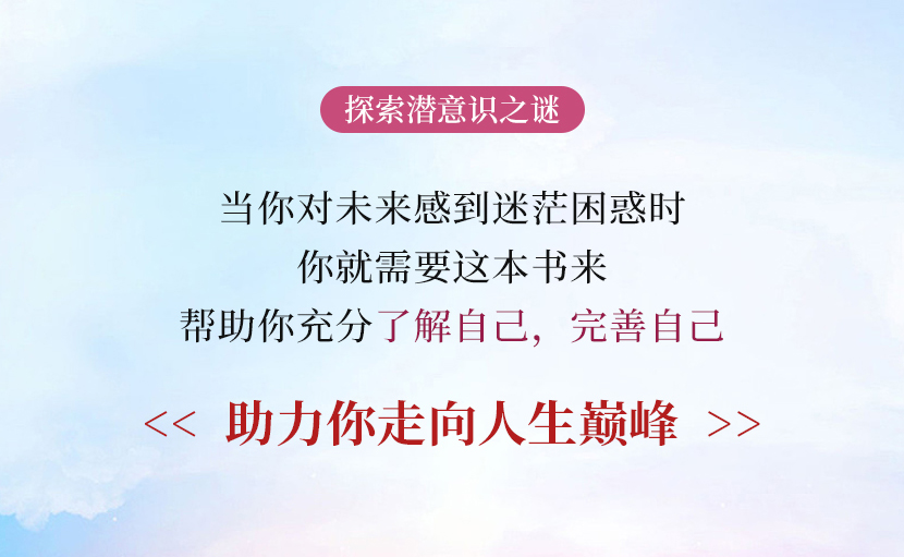 《潜意识之谜》——在这里你会认识与邂逅一个个自己,你会发现成功的你、遇见完美的你,仿佛从一个世界跨越到另一个世界,从经历到梦想,发现潜意识的宝藏,发现自己。