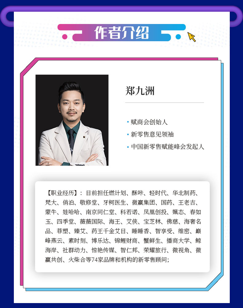 赋商会创始人; 新零售意见领袖;中国新零售赋能峰会发起人。