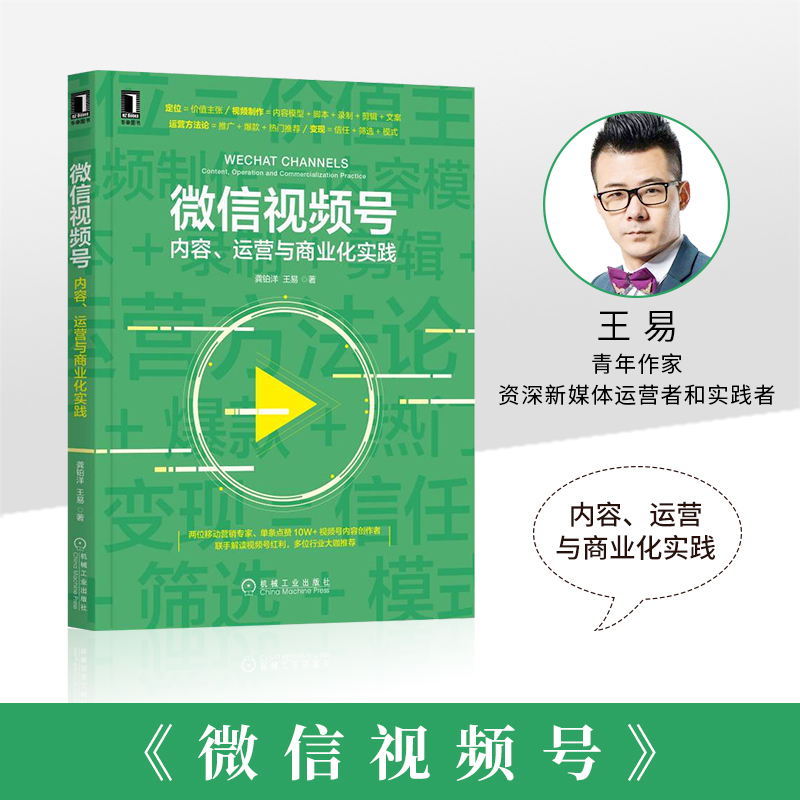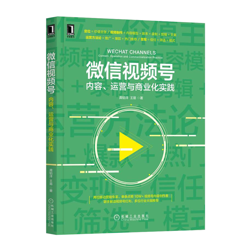 《微信视频号:内容、运营与商业化实践》两位视频10W+点赞创作者联手撰写从定位、视频制作、运营、变现四个维度 解读视频号红利。