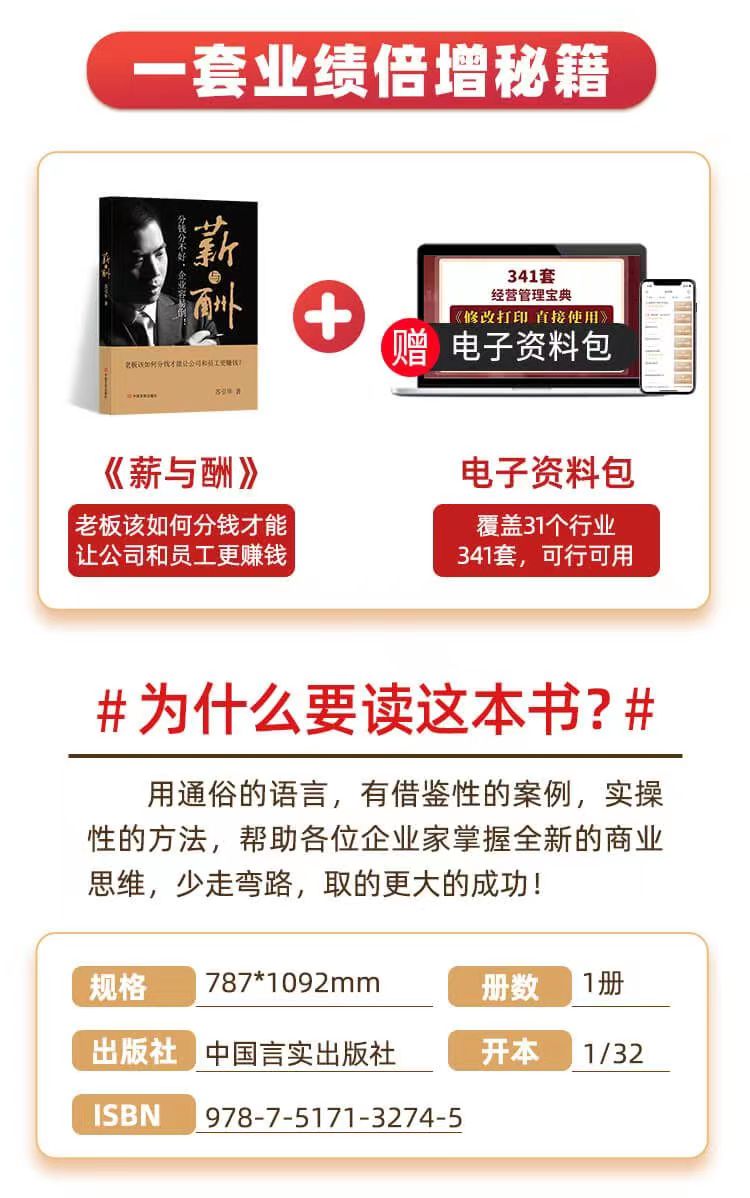 《薪与酬》——本书主要围绕为何要分钱、如何分钱、如何发工资、如何分股权这四个维度来写,旨在助力中小企业管理者提升完善薪酬机制,实现企业的业绩增长和老板的身心解放。