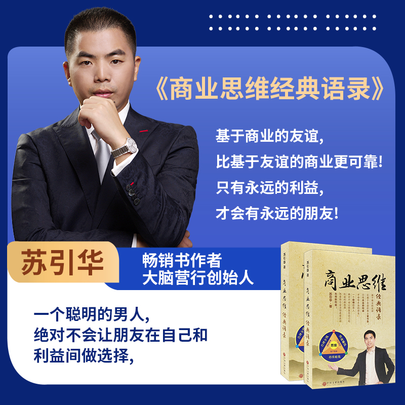 苏引华:《商业思维:经典语录》—— 基于商业的友谊,比基于友谊的商业更可靠,只有永远的利益,才会有永远的朋友,一个聪明的男人,绝对不会让朋友在自己和利益间做选择,而是想方设法创造共同利益。