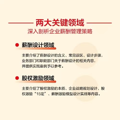 《薪酬管理与股权激励实战一本通》——本书从薪酬设计和股权激励两大关键领域,深入剖析了企业薪酬管理策略。书中详细解读了薪酬设计的核心理念、常见误区及操作步骤,同时针对业务部门和职能部门的薪酬设计提供了实战指导。