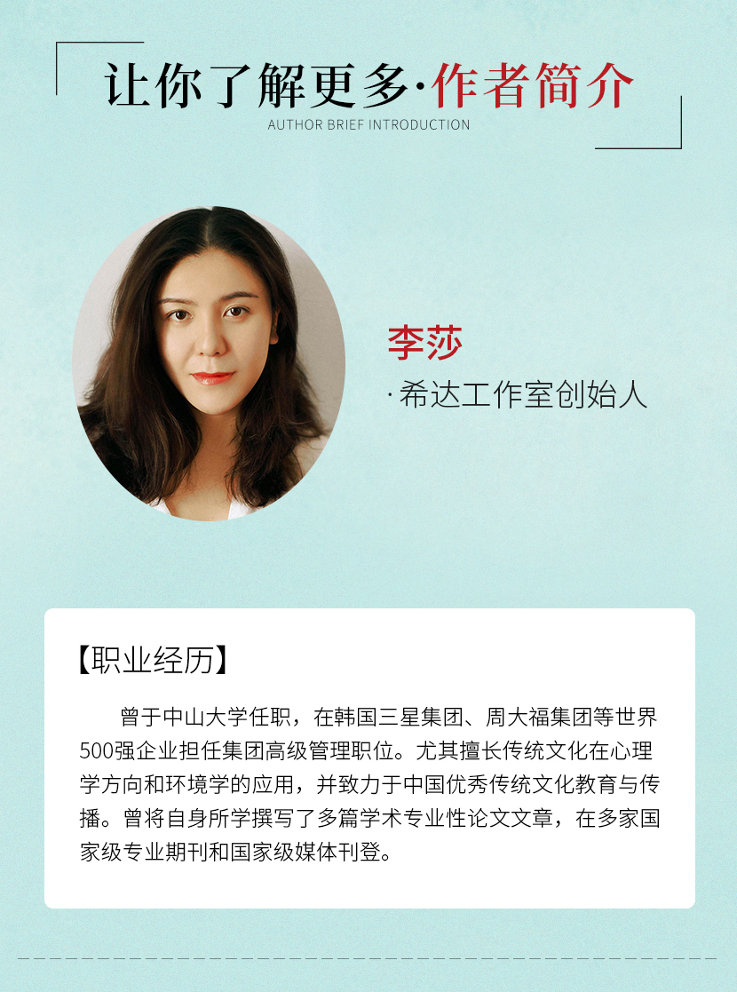 心理学应用研究学者、传统文化教育与传播研究学者。中山大学环境科学学士;中山大学经济学硕士;清华大学积极心理学专业进修。 希达文化工作室联合创始人