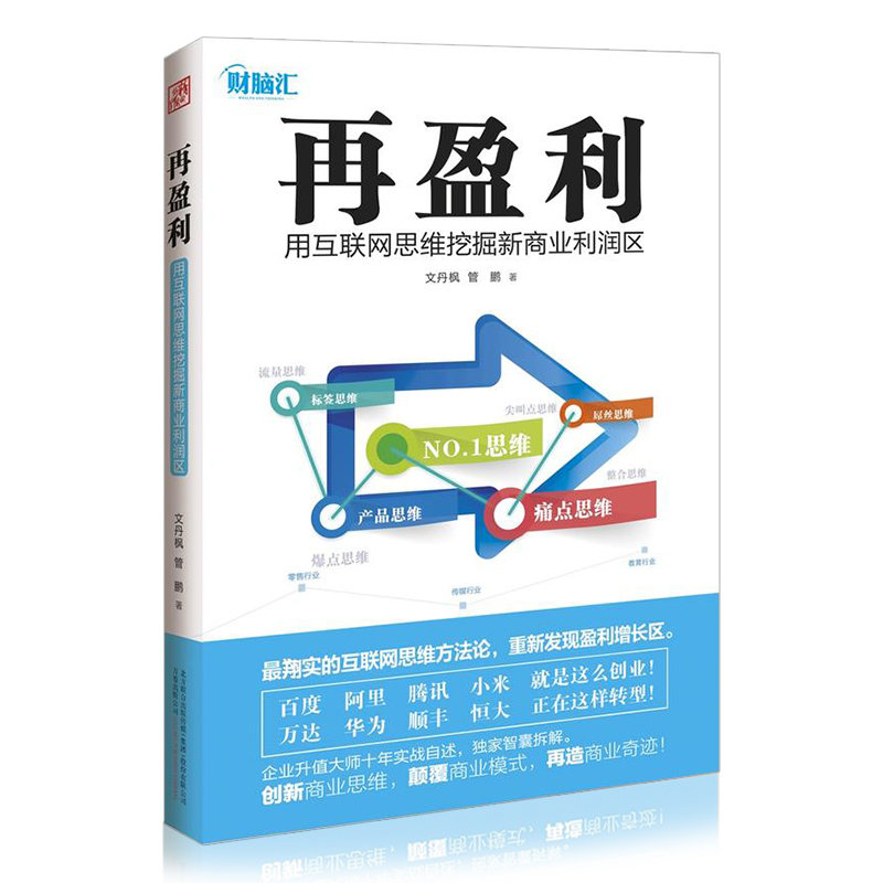 管鹏:《再盈利》标签思维、简约思维、产品思维、粉丝思维、流量思维、整合思维,深入浅出地阐述了、零售行业、教育行业、传媒行业等,以专业的视角全方位解读移动互联网给传统产业带来的变革。