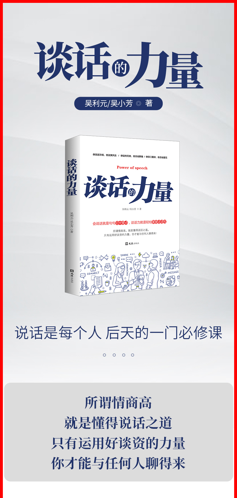 《谈话的力量》说话水平决定你的利益收割,会说话就是句句切中要点,谈话力就是轻松掌握话语权 所谓情商高,就是懂得说话之道。只有运用好谈资的力量,你才能与任何人聊得来!