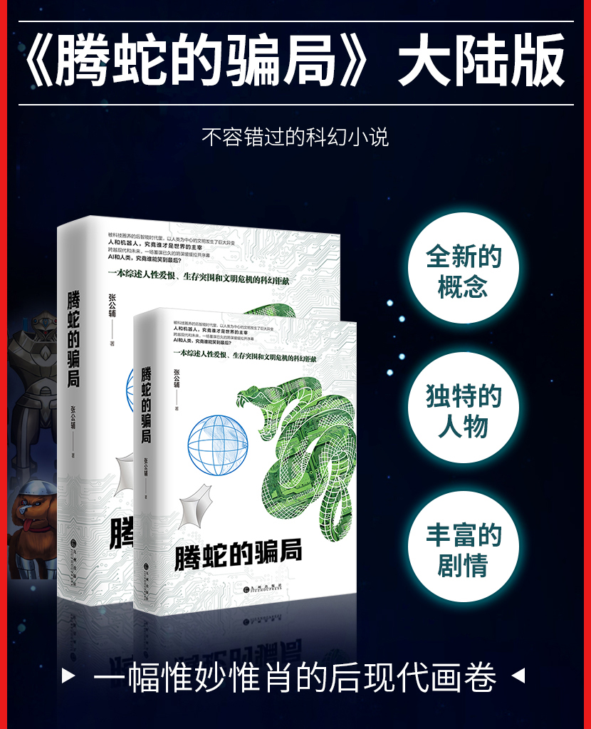 《腾蛇的骗局》(上册)大陆版 九州出版社——被科技圈养后的智能时代里,以人类为中心的文明发生了巨大异变,人和机器人,究竟谁才是世界的主宰,AI和人类,究竟谁能笑到最后