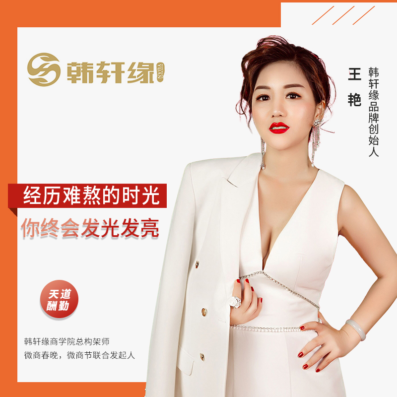 韩轩缘品牌创始人;韩轩缘商学院总构架师;微商春晚,微商节联合发起人;微商领袖栏目特邀嘉宾;微商大咖特邀嘉宾;玩美咖时尚栏目特邀嘉宾;