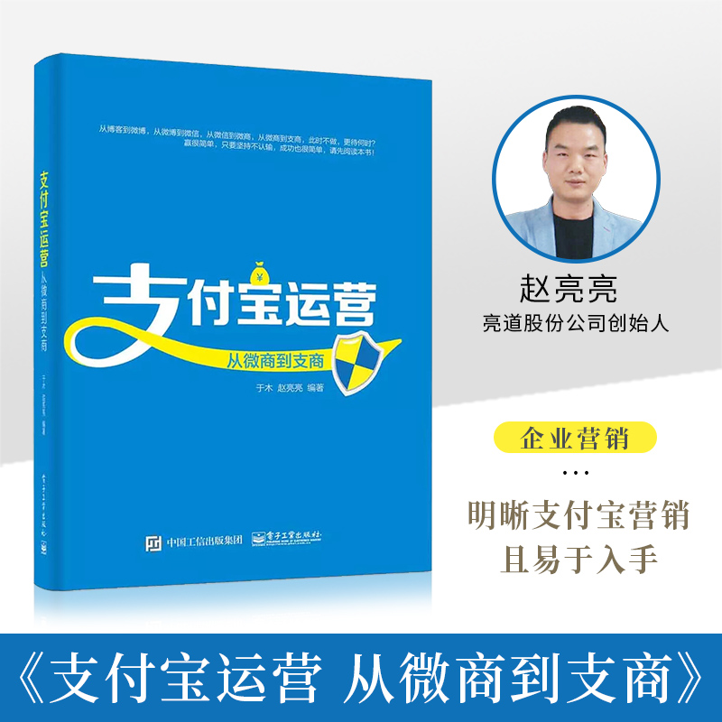 赵亮亮:《支付宝运营 从微商到支商》:本书从支付宝9.0版本的基础功能、支付宝生活圈、支付宝建群等各类带有企业营销或宣传推广性质的内容入手,充分挖掘支付宝营销背后的秘密,将商业营销及个人生活圈营销的方式、技巧、策略娓娓道来。全书图文结合,便于读者明晰支付宝营销的相关内容,且易于入手。