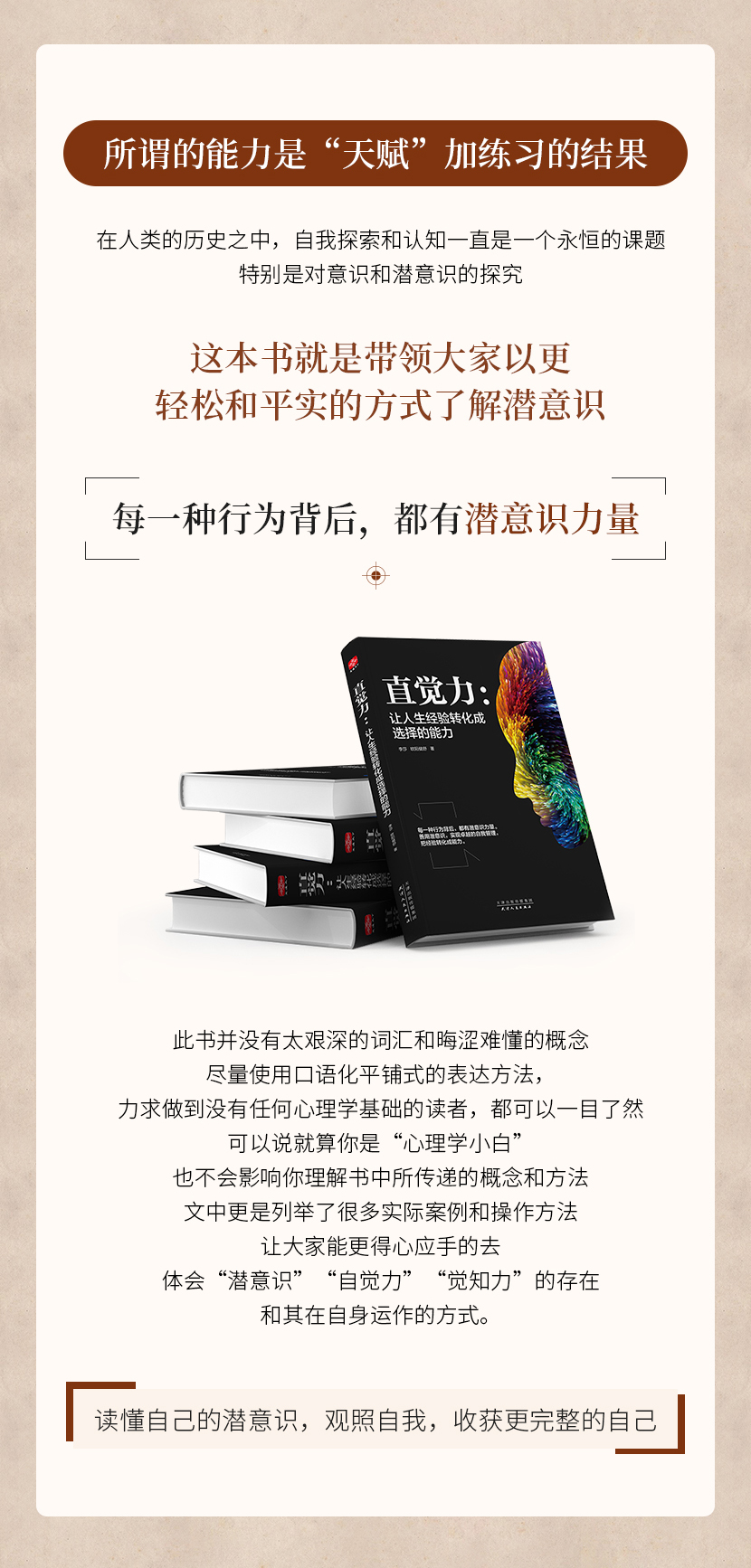 侯健飞:《直觉力:让人生经验转化成选择的能力》本书以心理学中“潜意识”的相关理论为基础,首创“直觉力”概念。运用心理学理论剖析日常生活中的现象,阐释其内在机制及人们行为背后的心理逻辑。