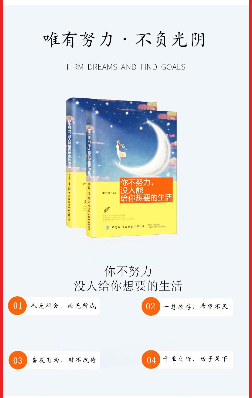 《你不努力,没有人能给你想要的生活》通过流畅优美的语言、暖心励志的故事,相信可以教给读者如何面对人生的坎坷,保有乐观的心态,守住自己的坚持。