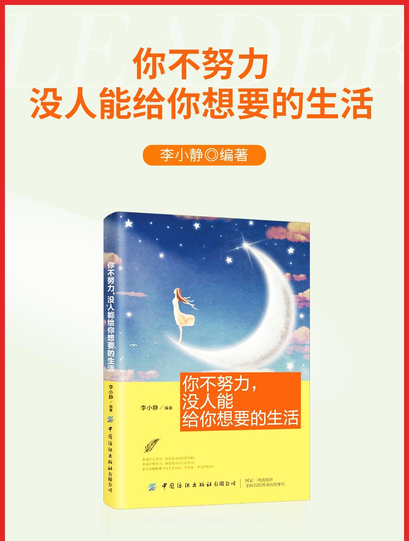 李小静:《你不努力,没有人能给你想要的生活》通过流畅优美的语言、暖心励志的故事,相信可以教给读者如何面对人生的坎坷,保有乐观的心态,守住自己的坚持。