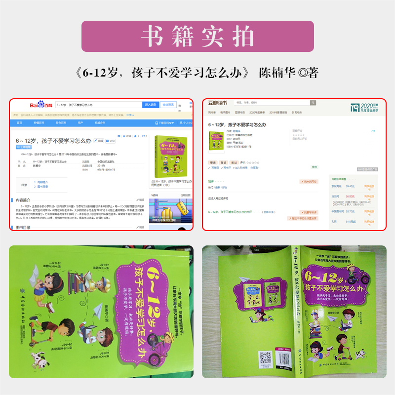 6~12岁,正是孩子的小学阶段,孩子的学习兴趣、习惯与方法影响着孩子未来的学业。每一个父母都渴望孩子能积极主动地求知,自觉主动地学习,可是在实际的生活中,大多数的孩子总是在“学习”这个问题上出难题。陈楠华著的《6-12岁孩子不爱学习怎么办》通过大量有效和确实可行的教育理念、方法和策略等为家长们撰写了一本引导孩子自主学习的实操性蓝本。帮助家长轻松指导孩子学习,让孩子养成良好的学习习惯,找到高效的学习方法,提高学习效率,取得好成绩。