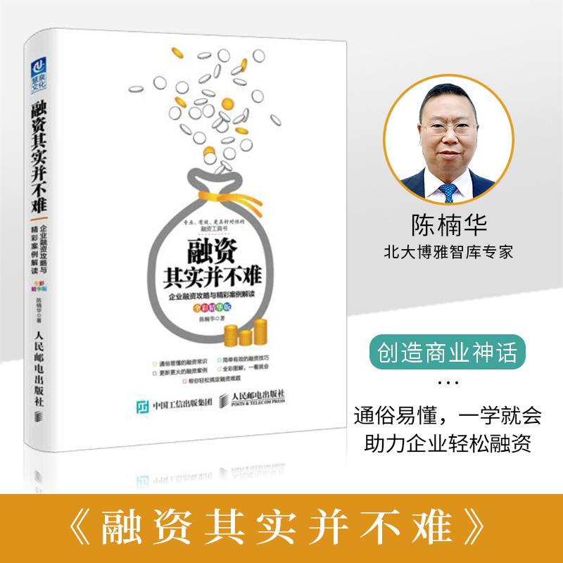 《融资其实并不难》本书集知识性、*性、故事性、趣味性于一体,全彩印刷,通俗易懂,助力企业轻松融资,非常适合老板、高管及创业者阅读。