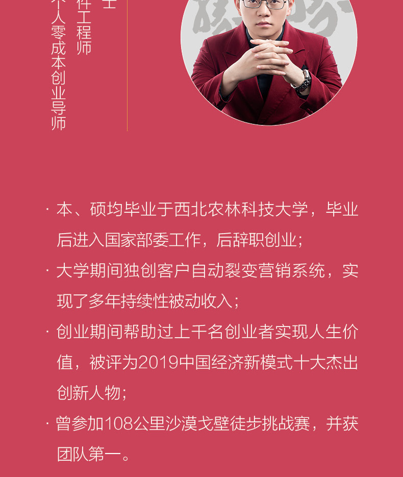 工学硕士; 高级软件工程师; 企业和个人零成本创业导师。