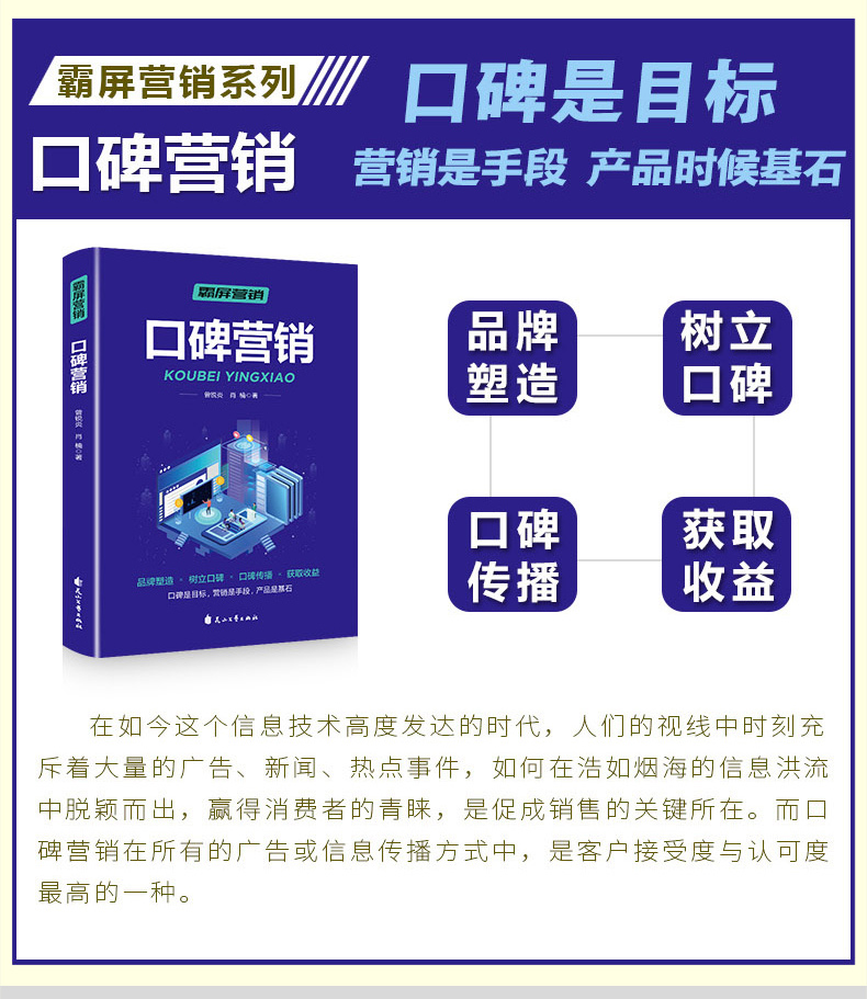 《口碑营销》如何在浩如烟海的信息洪流中脱颖而出,赢得消费者的青睐,是促成销售的关键所在。而口碑营销在所有的广告或信息传播方式中,是客户接受度与认可度最高的一种。