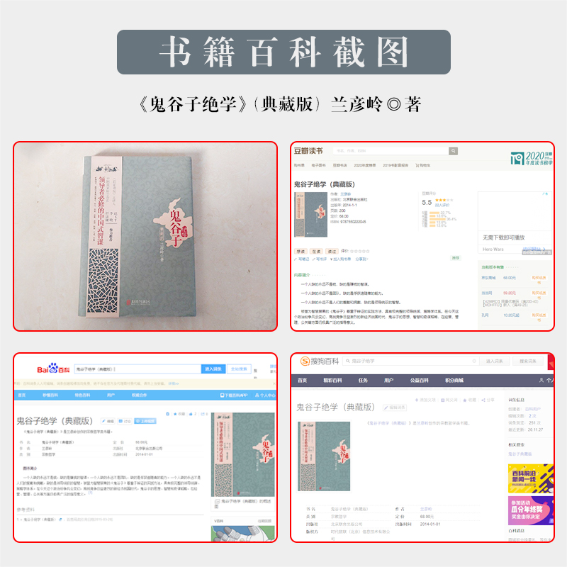 2. 本精装书是对原有《鬼谷子绝学》上千场系列课程的重新梳理与修正,并添加了作者精心甄选的多张珍贵照片以及百家讲坛主讲人赵玉平、李晓,道教协会会长任法融的鼎力推荐。