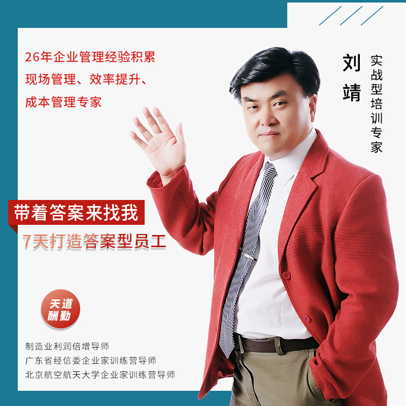 刘靖,管理培训专家,时代光华特聘讲师,多所知名高校MBA班授课讲师,现担任华企盛世企业管理咨询有限公总经理。曾在多家知名企业从事中高层管理工作十余年,拥有丰富的管理实战和培训经验,并长年在全国十多个城市巡回授课,深受学员好评。