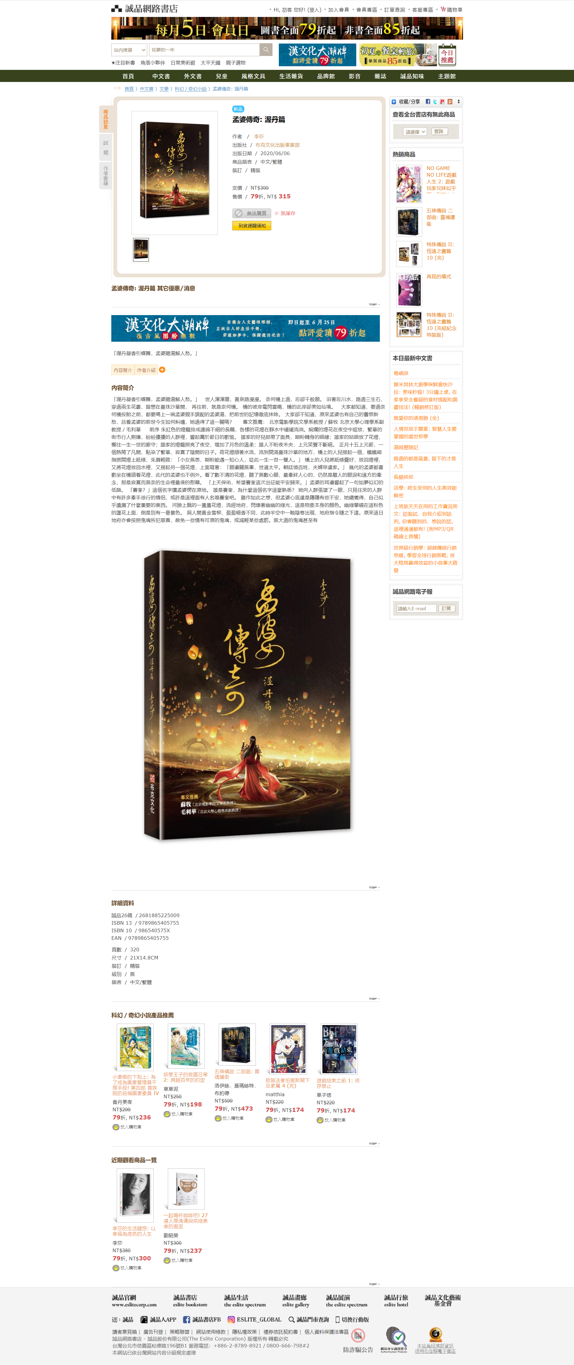 李莎:李莎《孟婆渥丹台湾版》网店页截图1