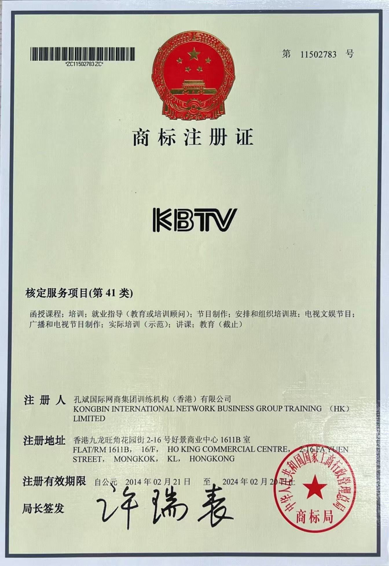 孔斌:孔斌国际商标注册证书:核定服务项目(41类)
