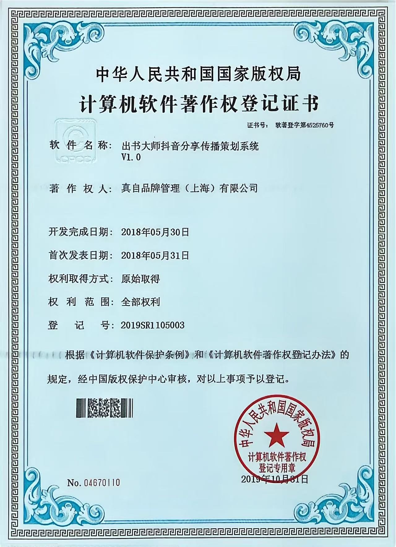 孔斌:出书大师抖音分享传播策划系统V1.0·计算机软件著作权登记证书