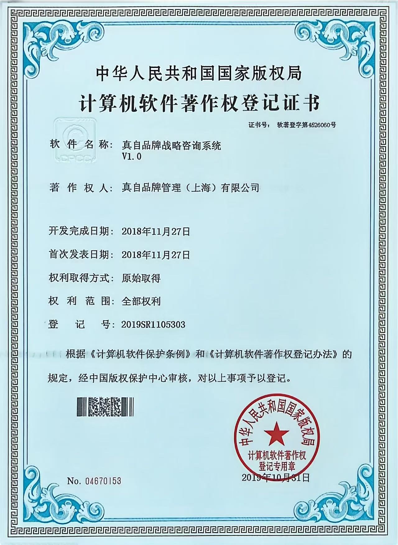 孔斌:真自品牌战略咨询系统V1.0·计算机软件著作权登记证书