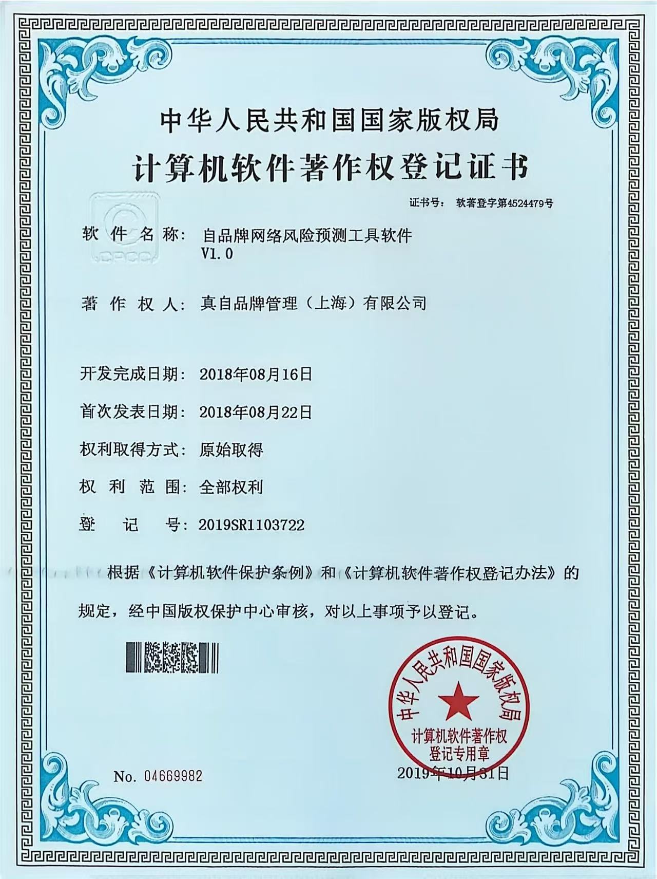 孔斌:自品牌网络风险预测工具V1.0·计算机软件著作权登记证书