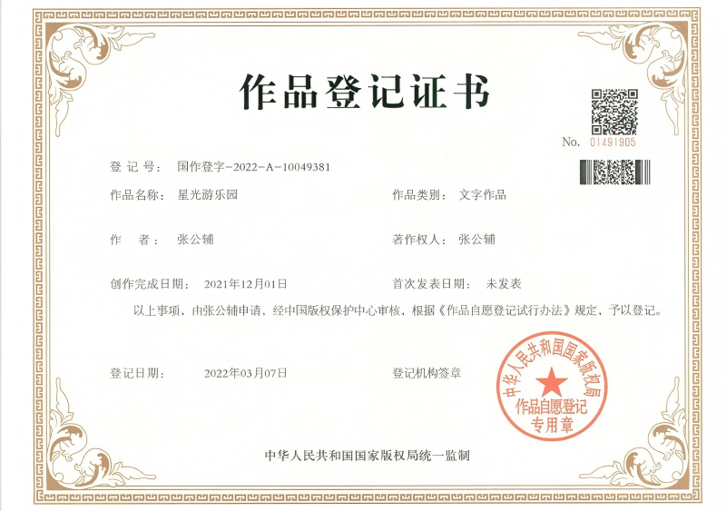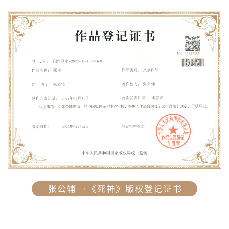 米高猫:《无稽的神话-历史的另一面》作品登记证书