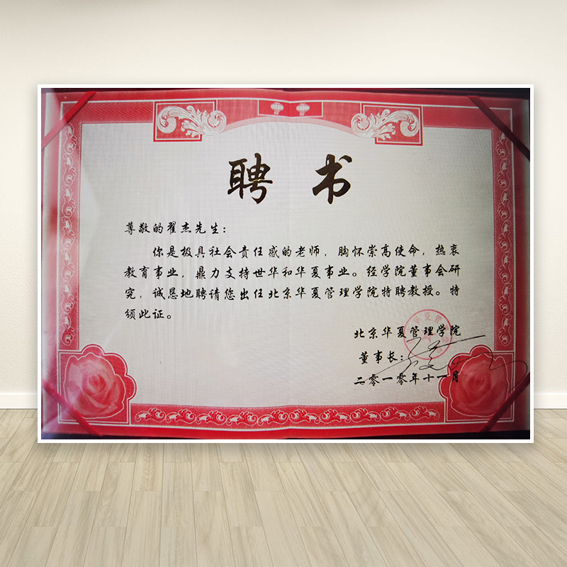 翟杰:中国工商管理研究院西南分院客座专家教授聘书
