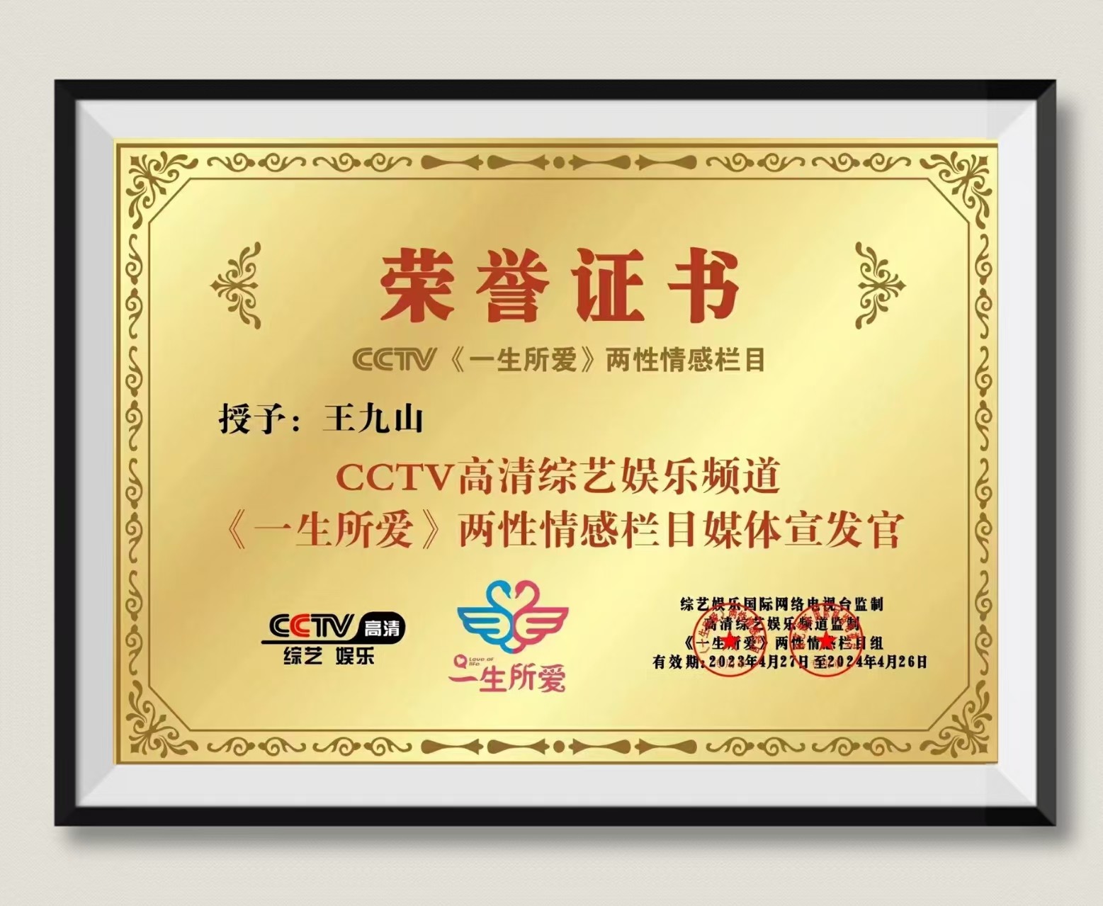 王九山:CCTV高清综艺娱乐频道《一生所爱》两性情感栏目媒体宣发官