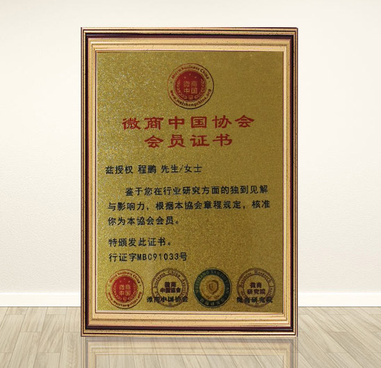 程鹏:微商中国协会会员证书