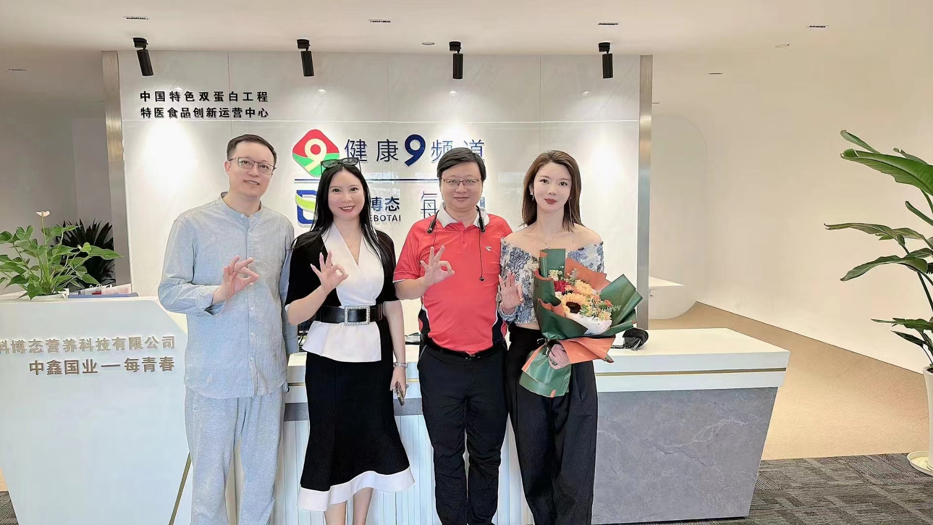 管鹏:管鹏老师在每青春健康第九频道运营中心和朋友一起合影留念