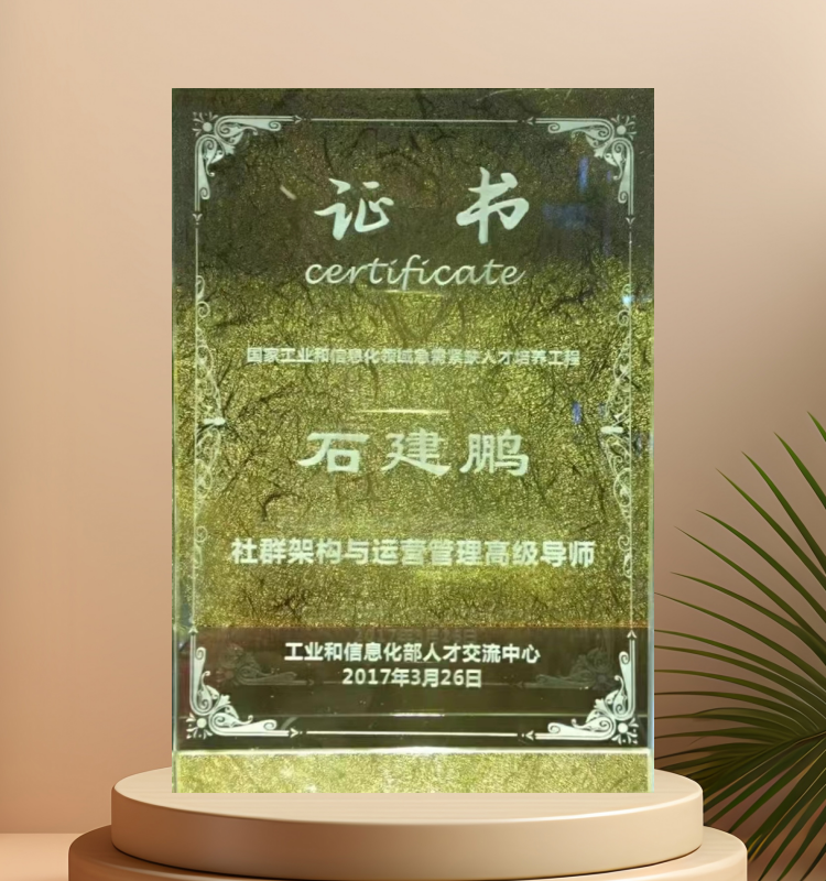 石建鹏:荣获——“社群架构与运营管理高级导师”证书